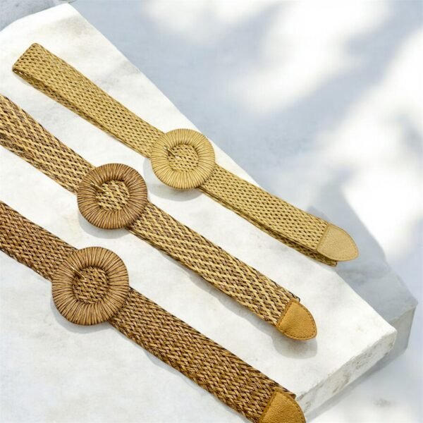 Adicione um toque natural e cheio de charme aos seus looks com o Cinto de Palha com elástico Clara, confeccionado artesanalmente em fibra trançada. Versátil e leve, ele é o acessório perfeito para valorizar vestidos, macaquinhos, saias e até composições casuais com jeans.